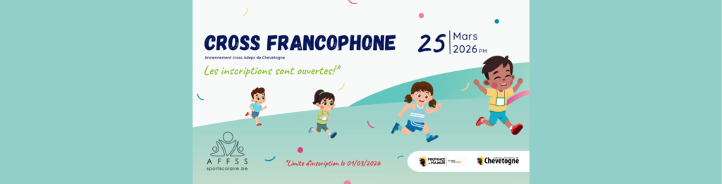 Nous avons le plaisir de vous informer que le Cross Francophone Open se tiendra le mercredi 25 mars 2026 au domaine provincial de Chevetogne, en remplacement du traditionnel Cross ADEPS.